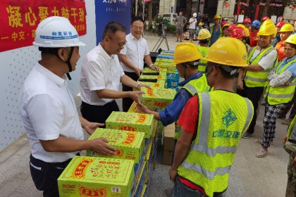 高溫籠罩下,6月21日,海南省總工會財貿工會主席呂亞平一行來到海口市新瓊片區(qū)回遷商品房(一期)項目建設工地“送清涼”,中交海投工會主席唐世連,省總工會財貿工會常委、經審主任歐陽水坤一同慰問。